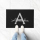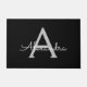 Black Silver Modern Script Girly Monogram Name Doormat