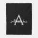 Black Silver Modern Script Girly Monogram Name Fleece Blanket