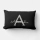 Black Silver Modern Script Girly Monogram Name Lumbar Cushion