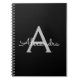 Black and Silver Simple Script Monogram Name Spiral Notebook Planner. This makes the perfect sweet 16 birthday, wedding, bridal shower, anniversary, baby shower or bachelorette party gift for someone that loves glam luxury and chic styles.