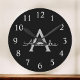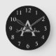 Black Silver Modern Script Girly Monogram Name Round Clock