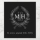 Personalise and add your monogram initials, years of marriage and a text. Decorated with a classic faux silver coloured wreath. Black background.