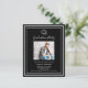 Black background, decorated with a grey frame, and a graduation cap. Personalise and add a photo name and details. White text.