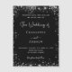 A chic black background, decorated with faux silver glitter, sparkles. Personalise and add your names and details.