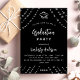 Black silver stars graduation party modern invitation