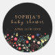 Black Simple Elegant Wildflower Baby Shower Classic Round Sticker