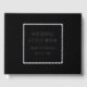 Solid black colour, simple wedding guest book with stylised foil print within a square border that features the bride and groom's name along with wedding date in your choice of colour foil print. Seen here in silver foil print. Select your guest book style.
