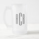 Black Simple Three Letter Wedding Monogram Frosted Glass Beer Mug