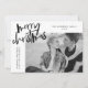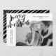 Send joy to friends and family with a Simply Merry holiday card by Late Bloom Paperie! The modern holiday card features "Merry Christmas" in a black hand-lettered brush script. Personalise the front of the card by adding your photo, custom greeting, family name, and year. The card reverses to display a black and white diagonal stripe pattern.