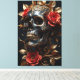 Elevate your space with this striking black skull portrait, adorned with intricate gold decorations, golden leaves, and vibrant red roses. A bold statement piece blending elegance and edginess for any room.