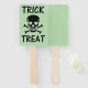 Black Skull Trick or Treat hand fans are for Halloween fun, haunted houses, Halloween parties, and horror conventions. Black Skull Trick or Treat is Steamy Raimon original art and calligraphy.