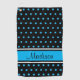 Black Sky Blue Polka Dot Stripe Script Name Golf Towel