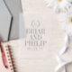 Monogrammed wedding vellum overlay with your soon to be shared initial inside a slender laurel wreath, your names in a large elegant font, and your wedding date beneath. Overlay wedding vellum personalised with your monogram, names, and wedding date in elegant black letters and numbers. Add an elegant touch to your wedding invitations with this personalised laurel wreath vellum overlay. Perfect as an overlay for your save the dates as well.