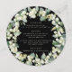 A black, three course wedding menu, featuring a wreath of hand painted snowberries and eucalyptus. Works on square or round card stock. All text is fully editable, and the scattered dots on the front and back can be deleted before ordering if you would prefer. Please view this Collection in my store for menu’s of different sizes/colours/shapes and for coordinating items.