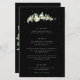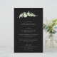 A black, three course wedding menu, featuring a stem of hand painted snowberries and eucalyptus on the front and a wreath on the back. All text is fully editable, and the scattered dots on the front and back can be deleted before ordering if you would prefer. Please view this Collection in my store for menu’s with alternative floral arrangements, a different number of courses and in different sizes/colours/shapes. Coordinating items also available.