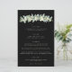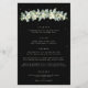 A black, four course wedding menu, featuring a garland of hand painted snowberries and eucalyptus on the front and a wreath on the back. All text is fully editable, and the scattered dots on the front and back can be deleted before ordering if you would prefer. Please view this Collection in my store for menu’s with alternative floral arrangements, a different number of courses and in different sizes/colours/shapes. Coordinating items also available.