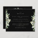 An elegant black flat wedding enclosure card featuring an edging of hand painted snowberries and eucalyptus on the front and a wreath on the back of the card. All text is fully editable and the scattered dots on the front and back can be deleted before ordering if you would prefer. This card is available with alternative botanical designs, in a portrait format, and in different colours. Please view the Collection in my store to see all options and coordinating items.
