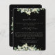 A black flat enclosure card for wedding receptions that are held at a different venue than the wedding ceremony. The card features an edging of hand painted snowberries and eucalyptus on the front and a wreath on the back of the card. All text is fully editable and the scattered dots on the front and back can be deleted before ordering if you would prefer. This card is available with alternative botanical designs, in a landscape format, and in different colours. Please view the Collection in my store to see all options and coordinating items.