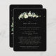 A black flat enclosure card for wedding receptions that are held at a different venue than the wedding ceremony. The card features an elegant stem of hand painted snowberries and eucalyptus on the front and a wreath on the back of the card. All text is fully editable and the scattered dots on the front and back can be deleted before ordering if you would prefer. This card is available with alternative botanical designs, in a landscape format, and in different colours. Please view the Collection in my store to see all options and coordinating items.