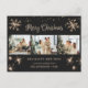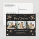 Black photo Merry Christmas and Happy New Year postcard featuring a photo collage with stars, snowflakes and a beautiful hand-lettered holiday greeting in a festive script font. Easily personalise this black holiday postcard with your photos, family name and text. The background can be customised to any colour.