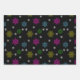 A traditional theme with a modern twist. This black wrapping paper with a pop of color will stand out.
