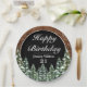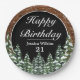 Black Snowy Wood & Forest Pine Happy Birthday Paper Plate