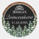 Black Snowy Wood & Forest Pine Tiara Quinceanera Classic Round Sticker