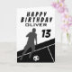 Black and white Soccer Player Football Ball Boy Birthday Card. A silhouette of a soccer player with a soccer ball on a soccer play field. Add your name, age and text inside or erase it.