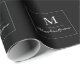 Black solid colour White monogram name Wrapping Paper