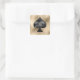 These custom sticker labels feature a poker or playing card theme for a Las Vegas or casino wedding. An image of a black spade in printed in the centre with a gold background. Two sample names are printed across the spade with a sample wedding date printed below.