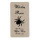 An eerie black spider on a rustic burlap background decorates this personalised wine label for Halloween. It can easily be customised to decorate beer or water bottles.