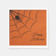 Orange paper napkins with black spider and web.