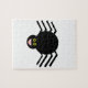 This awesome puzzle features a spooky black spider with eight hairy legs, yellow eyes with big black pupils and its mouth open showing its fangs.