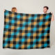 A Retro Colourful Designed Fleece Throw Blanket In Blue, Orange and Black Square Pattern