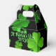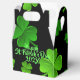 Irish celebration favour boxes with handles for adults and / or kids.  Perfect for St. Patrick’s Day gatherings, March birthdays, or being Irish.  Black with big four-leaf clover pattern and bright green text on the front.  The boxes will arrive unfolded.  Read more about the product in the description below.