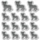Destei's original cartoon illustration of a cute black coat colour English Staffordshire Bull Terrier / Staffie breed dog. The dog design is placed 15 times on the sheet. The top three ones are slightly bigger than the rest of the 12 other ones.