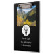 Tribal Black Stag Silhouette Monogram. The stock photo of a wooded mountain in fall colours can be replaced with your own, image, selfie, or photo. Between the perfect ten point buck rack is changeable initial. An ideal keepsake for a camping trip in the wild rather it's for, bachelor party, family reunion, or a relaxing vacation. All and all elegant but still manly.