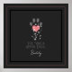 The walk never ends. Pink heart dog paw print tracking in sparkling starlight set against a soft black background. Use the text templates to create a custom pet memorial poster personalised with your companion's name. Edit to change the font, background, and frame outlines to any colours you wish. ♡ Idyllfire