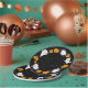 Paper plates with cute and spooky ghostly design for Halloween events.