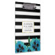Black Stripe & Blue Floral Personalised Clipboard