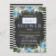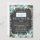 Pretty blue floral black stripe chalk baby shower invitation. You can easily customise this cute blue and black stripe chalkboard baby shower invitation by adding your event details in the font style and colour, wording, layout, etc., of your choice.