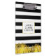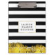 This clipboard features bold black and white stripes with a gleaming peony flower in faux gold effect. Coordinates with our Black Stripe & Gold Peony office accessories, paper products, and accessories. Customise with a monogram, name or text of your choice!