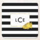 Black Stripe & Gold Peony Monogram Coasters