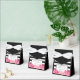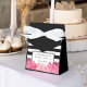 Elegant bridal shower favour boxes feature a chic pink and black colour palette, with a black and white stripe front panel and a grouping of watercolor peony flowers in magenta pink and rose quartz, a 2016 colour of the year. Add the guest of honour's name, event type, and date in coordinating black lettering.