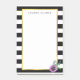 Handy sticky notes feature chic black and white stripes with a pretty watercolor pansy flower and faux gold foil border. Customise with a monogram, name or text of your choice!