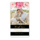 Wedding thank you custom photo template labels in black and white stripes stripes pattern with vintage pink watercolor flowers and gold colour text. Perfect for wedding favours or wedding wine bottle labels.