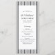 Elegant wedding programs card features graceful typography design that blends classy script and modern sans serif font on black and white stripes background, simple and unique, great for traditional vintage wedding, modern classic wedding and boho retro wedding,