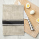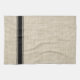 This Farmhouse Inspired Kitchen Towel features black stripes on a faux burlap background.