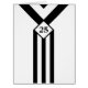 Three alternating black and white chevrons descend from the top of the geometric pattern and end at a diamond. It looks like a stylised medal hanging from a ribbon. The diamond contains a customisable 25 for the anniversary year. Three black stripes extend from the bottom of the diamond to the base of the vertical design.