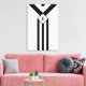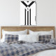 Three alternating black and white chevrons descend from the top of the geometric pattern and end at a diamond. It looks like a stylised medal hanging from a ribbon. The diamond contains a customisable monogram. Three black stripes extend from the bottom of the diamond to the base of the vertical design.